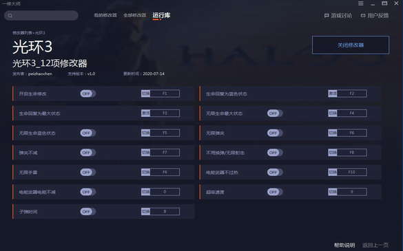 光环3修改器绿色版使用说明:
