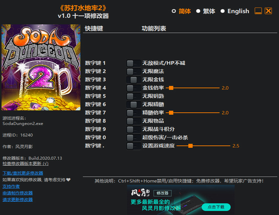 苏打地牢2修改器 v1.0 风灵月影版