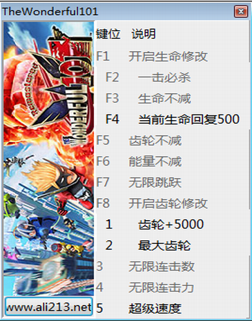 《神奇101重制版修改器》是一款动作冒险类游戏“神奇101重制版”改编制作而成的修改器,本修改器拥有当前生命回复500,开启齿轮修改,无限连击力,无限连击数,齿轮+5000,生命不减等十一项游戏数据修改功能,可以帮助用户在这个邪恶与正义互相较量的都市之中进行更好的战斗体验,并且在游戏内您将会遇到一些非常棘手的敌人,在游戏初期如果面对他们的话,玩家很有可能就直接打出解决了,当然如果您打开本修改器点击其中的一击必杀功能的话,也是可以轻易将他们击杀的,感兴趣的玩家快来下载体验吧。