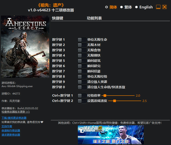 《祖先遗产修改器》是一款即时战略类游戏“祖先遗产”改编制作而成的修改器,在游戏中玩家在采集资源,训练军队的同时,还需要对周的环境进行勘探,并且布置好陷阱,这样一来在交战的时候,可以帮助玩家掌控战场上的全部动态,令那胜利的天平向您倾斜,并且在游戏中除了战争的布局以及掌控外,资源是最为重要的,一场战斗往往是需要消耗非常多资源的,在战斗后总会因为资源的不足被其他玩家给捡去便宜,但是现在有本修改器就不一样了,玩家只需要打开修改器,点击其中的无限资源功能,就能够瞬间在游戏前期打造出牢不可破的军团,进行更为爽快的游戏体验。