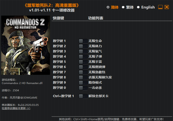 盟军敢死队2高清重制版修改器 v1.01-v1.11 风灵月影版