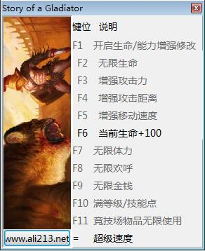 《角斗士故事修改器》是一款动作冒险类游戏“角斗士故事”改编制作而成的修改器,本修改器拥有竞技场物品无限使用、增强攻击力、增强攻击距离、增强移动速度、满技能点、无限欢呼等十一项游戏数据修改功能,可以帮助用户在这个异常凶险的角斗场中更为舒畅的生存下来,并且进行最为刺激且爽快的战斗体验,此外在游戏的过程中玩家需要面对各种各样的对手,他们有些具有强大的技能以体魄,而有些则具有超高的速度以及精湛的技巧,所以您需要合理的运用自己的优势来面对这些强悍的敌人,如果玩家遇到不可抵挡的敌人的话,就赶紧点击修改器内的无限生命功能,用这神奇的力量来战胜面前的所有敌人,成为整个角斗场上最为强大的存在。