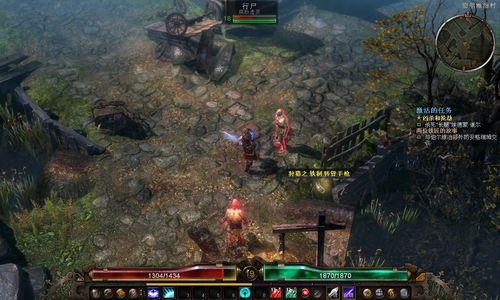 3、沿着大路走,进入殓葬洞穴,干掉紫名boss,完成波旁队长交给你的第一个任务。图中绿色是虚化结晶——洗星座,制作装备材料主要掉落来源,打烂。祭坛留着,回来再点。接下来去竞技场。