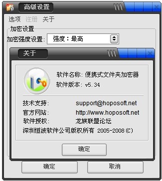 三种加密强度: 隐藏锁定,打乱文件结构,BlowFish算法完全加密,三种加密强度自主选择,可以满足不同层次用户的需要。