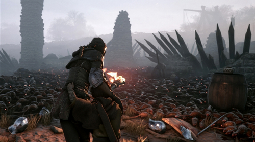 1、具体先灭四周灯柱放出老鼠,再灭地上篝火,简单咬死阿尼第一条命。然后阿尼重生,开始第二条命,他的武器着火啦。