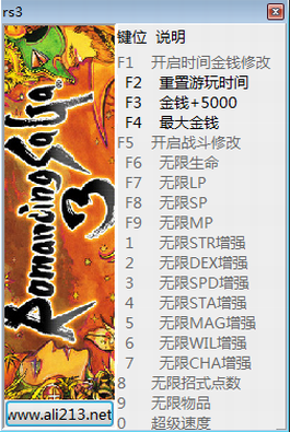 《浪漫沙迦3修改器》是一款根据角色扮演类游戏“浪漫沙迦3”改编制作而成的修改器,本修改器拥有无限STR增强、重置游玩时间、无限生命、无限物品、无限招式点数、超级速度等十七项强大的游戏数据修改功能,可以帮助用户在这个极为危险的世界当中成功的生存下去,并且成功的拯救这个世界,感兴趣的玩家快来下载体验吧。
