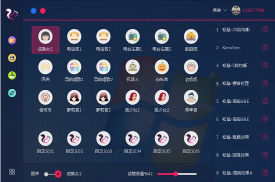 《松鼠变声器破解版下载安装》是一款功能强大实用且操作简单有趣的变声软件,这款软件拥有清爽整洁的页面,详细的功能列表让用户的上手速度更为的快速,同时这款软件还有多种语音类型可以使用,音质传递效果好,打造百变声音,软件还支持玩家自定义快捷键,让操作更为简便,功能非常实用,并且这款软件还内置了各种VST插件效果器,可以DIY组合和调试出各种搞怪的声音如少女音,萝莉音,电音,电话音,青年音,机器人等等,感兴趣的用户快来下载体验吧。