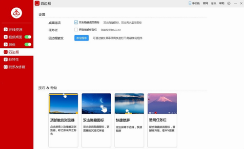 1、透明任务栏:这款软件可配合用户隐藏桌面图标,震撼再升级,看mv更爽。