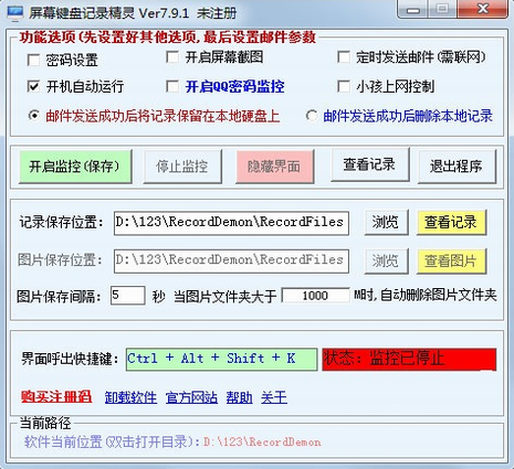1、首先运行本目录下的sysdemon.exe,然后点"开启记录",注意这个程序只要运行一次就可以了,以后开机的时候自动运行;