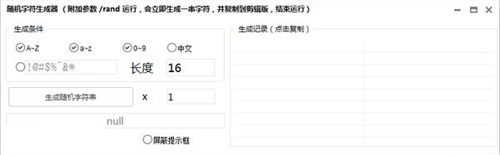 随机字符生成器最新版是一款功能十分全面的字符生成软件,随机字符生成器最新版界面简洁大方,体积小巧实用,支持大小写字母,数字,中文,和所有一个字节的其他字符等,附加参数/rand运行,会立即生成一串字符,并复制到剪辑板,结束运行!操作十分简单。