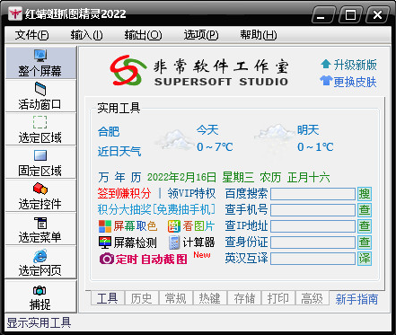 软件内置实用工具集,提供定时任务助手、屏幕取色、屏幕检测、天气、万年历、搜索引擎、IP查询、手机号归属查询、英汉互译等实用工具,满足用户的多样化使用需求。