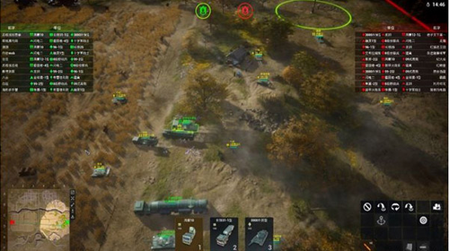 4、游戏目前只开放了标准战斗这一个模式,即10V10模式,该模式下又分为“资源争夺战”与“遭遇战”,简单来说就是我们常见的占点得分和歼灭。虽然一局比赛看上去单位很多,但节奏却是相当快。从最初轻坦与侦查机的试探开始,一旦双方遭遇,一轮交火是在所难免的。只要有人掉单位,战斗就会持续滚动起来,优势方想趁机扩大战果,劣势方则需要通过克制单位,扳回一城。如果双方都是莽夫,一局比赛在10分钟内结束,也是常规操作。