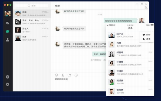4、即时通讯:支持会议中群聊模式,满足多方文本沟通;同时支持多层级通讯录组织架构,可解决企业内部员工间沟通。
