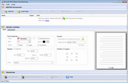 Boxoft PDF Bates Numbering 冲压PDF与在所有PDF文件的连续系列中的唯一贝茨数,您可以添加多个PDF文件与添加文件夹选项,以减少您的时间和精力。
