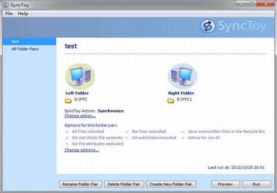 3、容许您根据点击同歩一个同歩组或全部同歩组,并且您乃至能够设定SyncToy无人化运作。