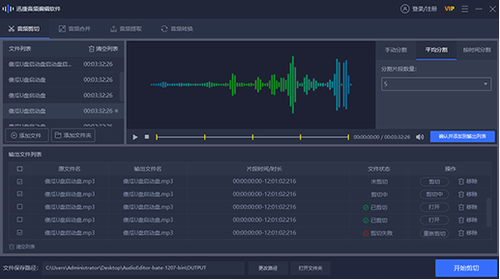 1、多种音频剪切方式:支持平均分割、时间分割、手动分割。