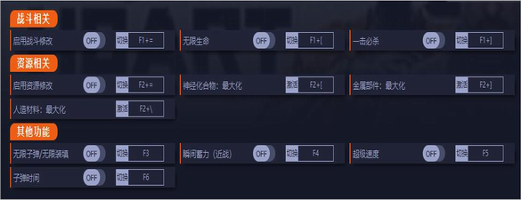 3、关于资源修改:必须先激活“开启资源修改(F2+=)”,然后再激活相应的子修改项。