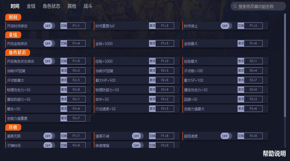 1、开启金钱修改:开启后打开菜单[Esc]修改。