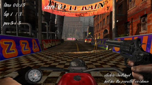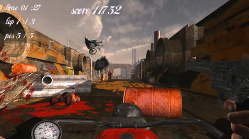 3、摩托车,射击,怪物和比基尼美眉,每个赛道都有3圈,分别是车厂,土窖,深渊,豪宅和沼泽。