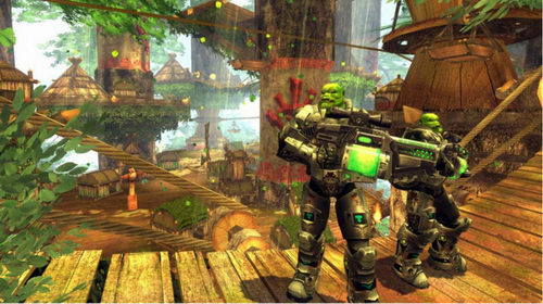 3、英雄萨姆2这款游戏借助了全新的3D引擎,游戏画面的效果又上了一个层次。这次Sam身处于7个不同风格的世界中,在哪充满奇异动植物的行星中作时间旅行。