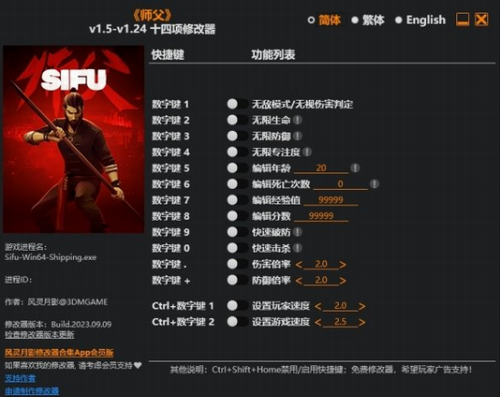 师父修改器 v1.24.Plus十四项修改器风灵月影版