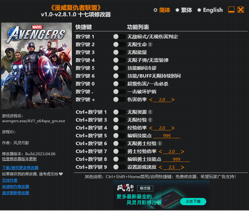漫威复仇者联盟修改器 v1.0-v2.8.1.0 风灵月影版