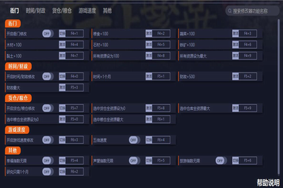 3、开启时间/财政修改:游戏非暂停时开启和修改。