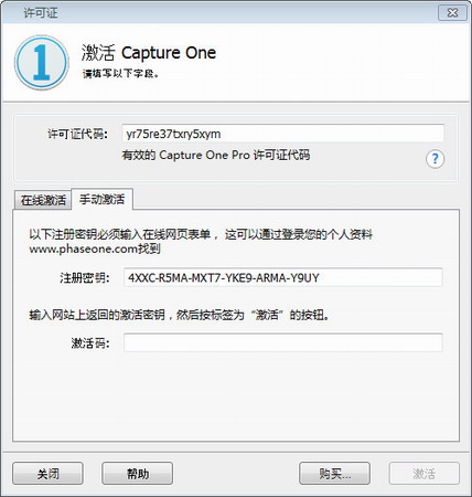 5、之后你将得到一串许可证代码将其输入到激活对话框中的许可证代码框内。