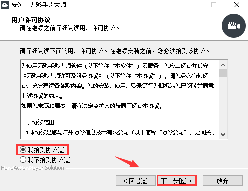 ④ 选择“我接受协议[a]”——点击”下一步”。