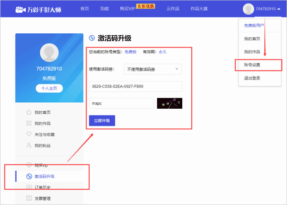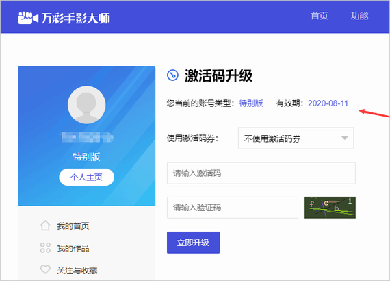 3、升级好后,打开万彩手影大师软件,登录已升级好的账号,就可以获得特别版的使用权限。