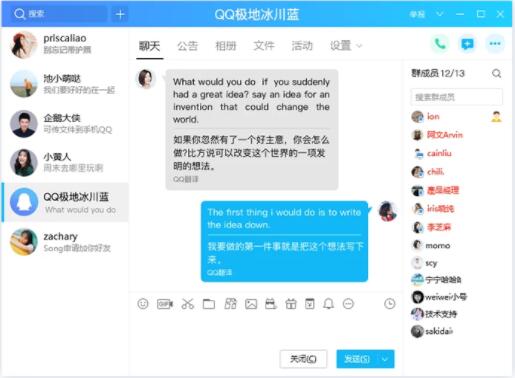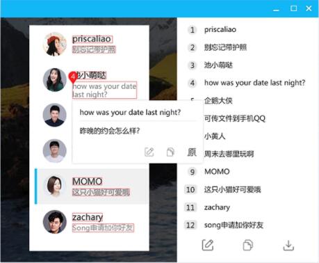 2、消息翻译,右键点击文本消息,可支持快速翻译。