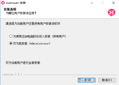 1、双击安装程序,进入喧喧IM安装操作界面,选择要为本机那个用户安装,个人电脑默认即可。