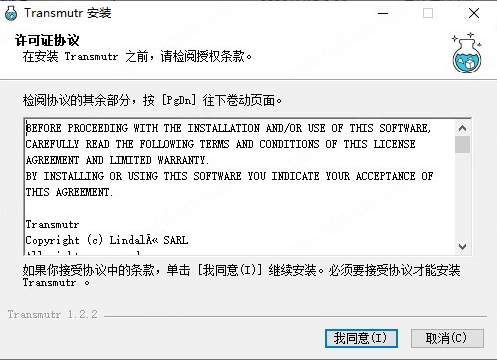 2、双击“transmutr_setup_1.2.2.exe”开始安装软件,选择我同意;