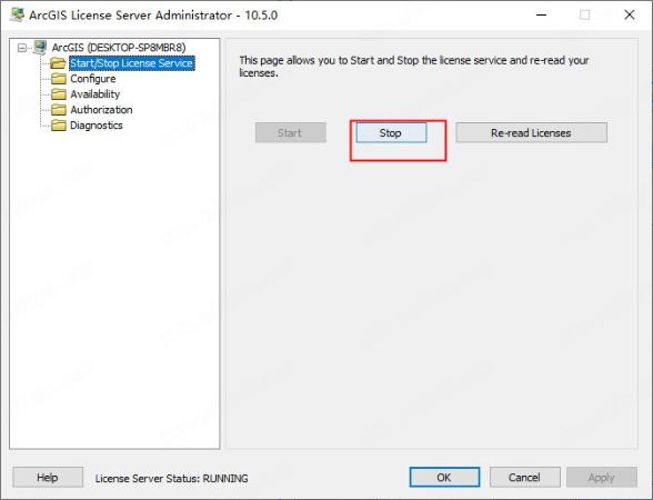2、安装完成,点击在开始菜单文件夹中找到软件运行License Server Administrator,在启动/停止许可服务项中,停止许可;