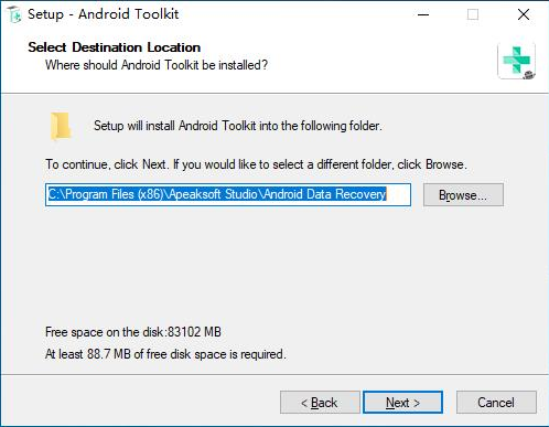 安装向导默认设置的软件默认安装路径为C:\Program Files (x86)\Apeaksoft Studio\Android Data Recovery