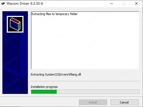 2、接着,我们可以看到,wacom数位板驱动安装程序执行时会把相关文件解压到一个临时文件夹的,这里我们直接确定即可。