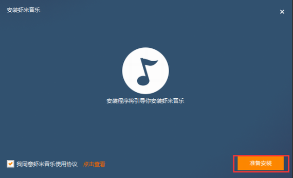 1、下载虾米音乐安装包后打开.exe安装程序,点击准备安装