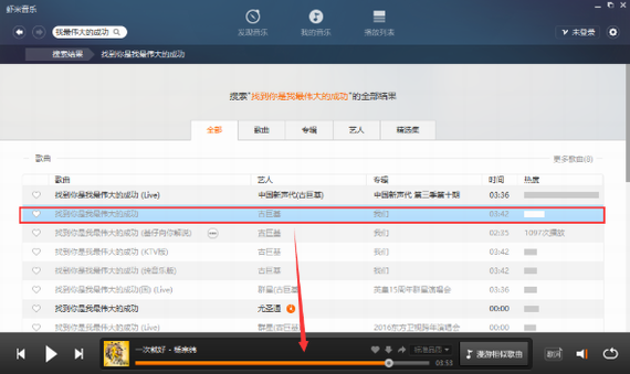 3、想要播放器某首歌曲的时候,选中合适的歌曲拖到如图所示的位置