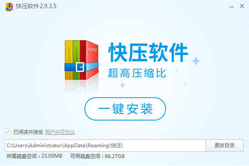 2.可更改安装路径,勾选已阅读并接受用户许可协议,随后点击一键安装