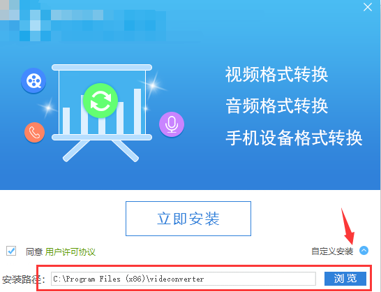 2、我们鼠标左键双击exe文件,就可以进入到下图中的安装界面,我们可以点击界面的立即安装,软件会默认安装到系统C盘中,或者我们点击右下角的自定义安装,然后可以点击浏览自行选择安装位置。
