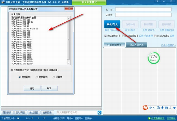 咔咔证照大师破解版是一款十分专业的证件照制作工具。这款软件够帮助用户快速编辑证件照,并支持在制作后直接打印出来,对于制作学生学籍、教师照片、身份证等证件照十分方便。不但支持用户连接相机获取照片,而且还支持用户从文件夹中添加照片进行证件照的制作,该软件能够帮助用户快速制作证件照,快速打印照片,能够支持用户用户添加各种型号的摄像机,如果你有制作证件照的需要,欢迎前来下载试试吧。