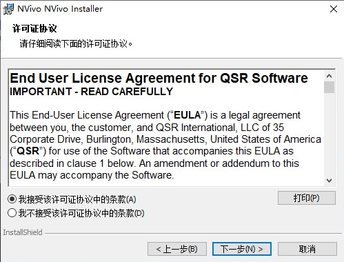 2、运行NVivo.x64_20.2.0.426.exe,选择同意条款