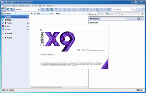 EndNote X9是一款主流文献管理软件此版本由科大校友提供,在此表示感谢!有数以百万计的研究人员、学生和图书管理员使用,它能方便地扩展任何语言参考书目,允许你创建任意大小的文献库。通过EndNote可进行文献批量下载和管理、写作论文时添加索引、分析某篇文献的引文索引、分析某领域或者学术课题的经典文献地位等。作为一名研究人员,您经常处理不同的角色,处理对时间的竞争要求,并且不仅协调您自己在出版研究中的活动,还要协调您的在部门和世界各地的合作者。EndNote在学术界很出名,并且很多高校的教程都是基于英文版本的,所以网上很少有汉化版本的出现,如果你确实要用汉化版,可以搜索一下以前的版本。