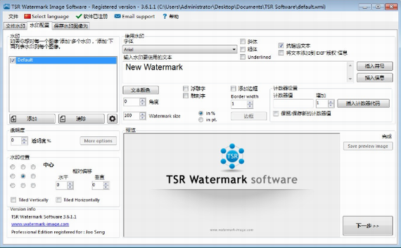 tsr watermark image吾爱破解版是一款简单易用的图片加水印工具。这款软件可以添加数字水印到图像,透明度支持自定义。你可以使用文字或其他作为水印的图片创建水印来源。如果您要添加水印的背景,你可以设置标志或文字,或多或少透明,并定义图像上的透明颜色或选择在上面的透明色的左上角第一个像素。此外,它还可以增强复制保护,创建难以移除的固体水印。它可靠稳定,完成加水印的工作无需反复调整。感兴趣的朋友快来下载吧。