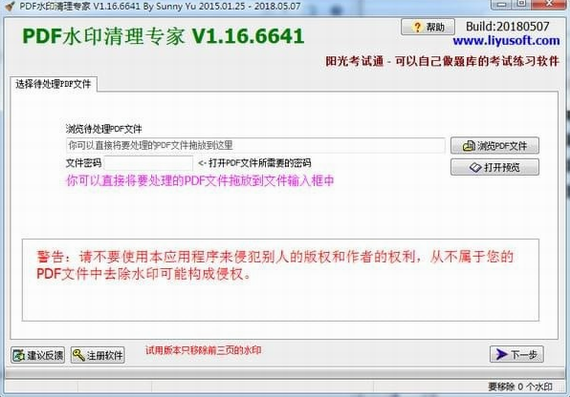 pdf水印清理专家注册版使用说明: