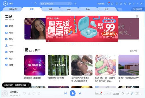 2、MV电视台: 酷狗音乐最新版突破性地引入歌手写真切换特性,歌词、歌手写真同时展示,效果媲美MV。