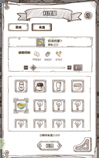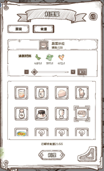 3、当投入的食材成功制作出符合食谱规范的料理时,可以在食谱界面对料理进行批量制作