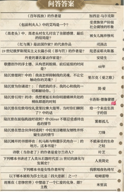 光与夜之恋书海文渊答案是什么?书海文渊活动答案分享