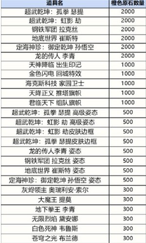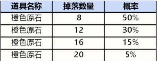 1:下图为必得的奖励,橙色原石,数量为八个,十二个,十六个,二十个,概率分别是百分之五十,百分之三十,百分之十五,百分之五