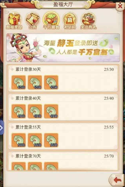 3.五谷丰登可以额外提供32200仙玉和4900飘逸卷,4900飘逸卷=24.5琵琶谱(如果按照好友648礼包计算大概相当于130元,这也是想抽黄金搭档礼盒的玩家必须的)。